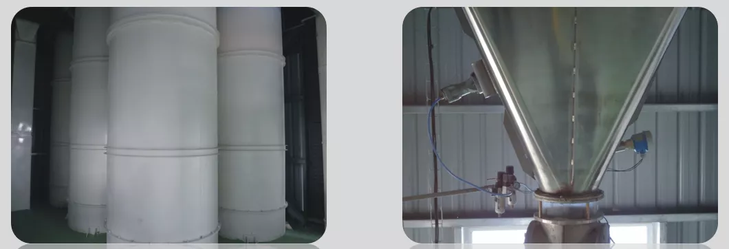 通過垂直落料工藝設計,將原料倉由傳統的方形倉改為圓筒倉,并配有自清裝置,最大限度的減少了物料的殘留與產品間的交叉污染。