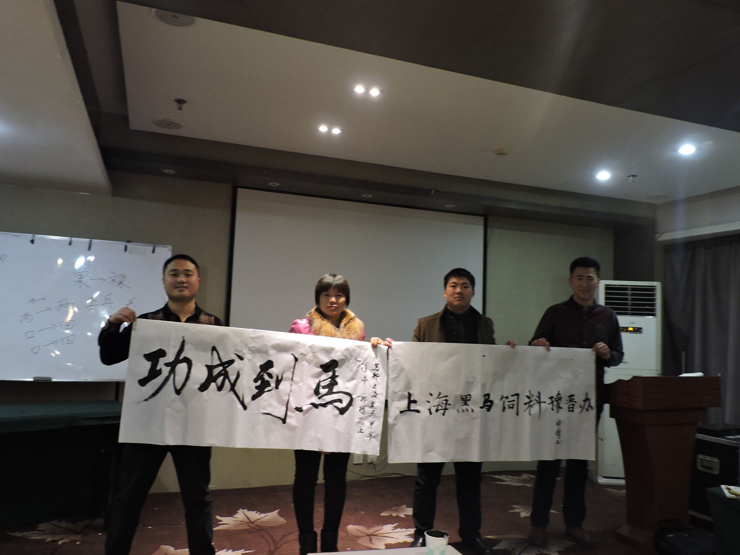 公司河南區(qū)域人才濟濟,劉軍、邱輝、花江昌揮筆潑墨,共同書寫2015華麗篇章,歌神邱輝一展歌喉,頗具歌唱家的風范。茶話會期間大家激情高漲,每因為員工都上臺宣誓,共同暢想承載中國夢、農(nóng)業(yè)夢以及飼料夢的2015年。