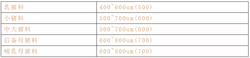2、粉碎玉米,豬不同生長階段,玉米細度不同,標準如下: